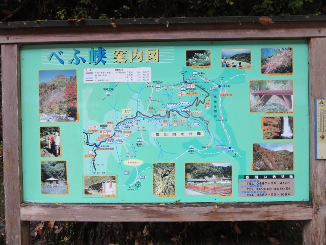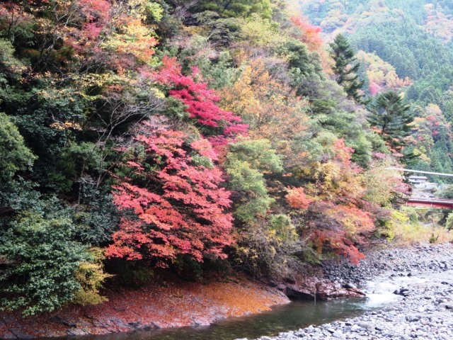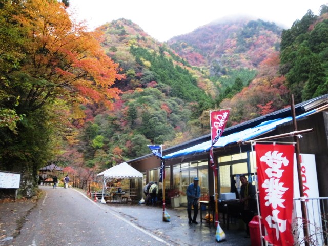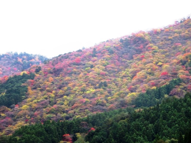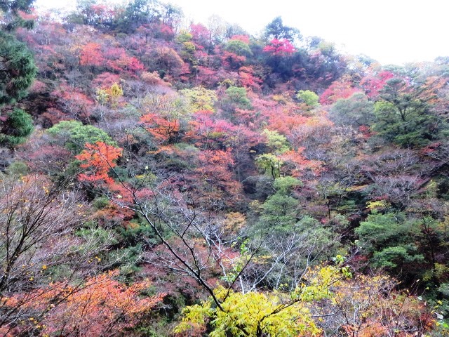 | 『別府峡』 やはり雨となると見物客はマバラ。 でも今回は久々のきれいな紅葉に出会ったのだ! (1) 午前中は結構雨が降っていた そして午後、自宅出発時は雨雲だったけど雨もやみ出発! しかし現地に着くまでのドライブコースもなかなかの紅葉状態だった! (2) 天気の良い日曜日だったら、いつもは紅葉見物の人でごった返しだ 天気が悪いとこの通り!閑古鳥が泣いている・・・ だから今回は超ラッキーなのだ! (3) 菜これが店の前にある案内図です。 (4) なかなか写真では生のきれいさは伝えきれません! (5) こ山の上の方まで見事に紅葉しています! これで青空だったら最高だろうな! (6) 川面の岩場にはもみじの絨毯が出来ています。 自宅から、約50Kmちょっとでこんな素晴らしい景色が見られて 今年はラッキーな紅葉見物が出来ました! |