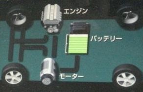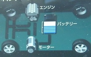 分かりやすいエネルギーモニター!(パートX) 左モニターではバッテリーレベル5/8状態。 回生エネルギーを蓄え続けるとバッテリーはフル充電に近づきグリーンに変わる。 さらに、回生を続けると、ついにエンジンが自動的にかかりブレーキ制御の手助けを始める。 せっかくの環境への貢献もこの場だけは無駄にガソリンを使ってしまう・・・ →