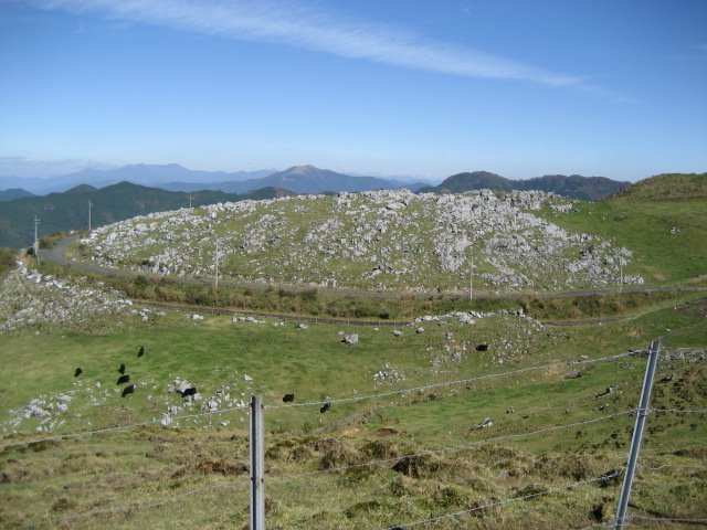 (1) すこし早いかなあと思いながら紅葉見物に来ました。 天気も良いし、ここまでも結構きれいだった。 (2) 高原では牛たちがのんびり食事をしていました。 天気が良いから遠くまで眺めることができ、とても気持ちの良いものでした。 (3) ![]() カルスト地形らしい景色です。 (4) ![]() 四国カルストと牛たちに癒されたのどかな風景を楽しんできました。 |
