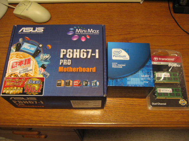 | 久々の自作となる今回のパソコンのパーツは何にしようかと考えました。 ACアダプター電源付きPCケースとして非常に気に入っている。 しかし、これはもう販売されていない。 デカいのは邪魔なので、このPCケースを再利用する。 CPU: 80Wの電源となると必然的に選ばれるのは低電圧CPU。 AMD系は電圧が高めが多いためパス! intel系でCPU名の最後に「T」の付くタイプと限定される 価格と性能とこのPCの需要のバランスを考えると 「Pentium Dual-Core G630T」で決定! \5,980- マザーボード: このケースでいけるのは、Mini−ITXタイプのみ 対応マザーボードが少ないうえに価格がちょっと高い。 英語サイトにはあるが日本語サイトにはない! だけど機能が良くて価格が安い・・・ということで。 「P8H67-I PRO」 \6,280- HDD: これは、普段ならあまりの物を再利用するのだが SSDのスピードが気になるのでちょっと高いが購入することにした。 「330 Series SSDSC2CT120A3K5」 \7,548- メモリー: これは、マザーボードが珍しくSODIMMタイプだ。 もう少しで、気づかずにDIMMタイプを買うところだった。 昔、128MBが¥10,000−してたのが懐かしい・・・ 「SODIMM DDR3 PC3-10600 4GB 2枚組」 \2,880- CDドライブ: これは、外付けを流用。もう内臓なんか必要ない! |