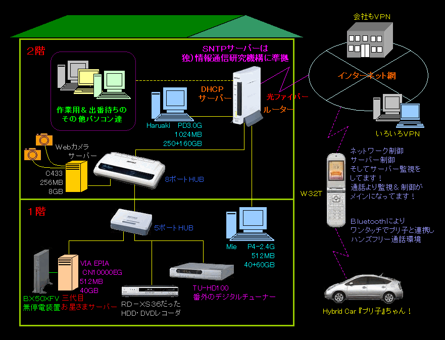 ・・・ 2007年12月まで ・・・ 三代目お星さまサーバー公開です! カメラサーバーは今のところそのままです。 DVDレコーダーがXS36だったなあ・・・デジタルチューナーもネットワークに参加! 標準時間設定は東京大学から新たな情報通信研究機構に変更。