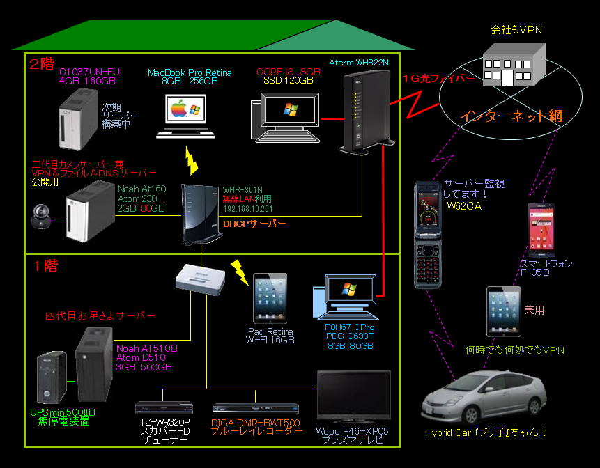 ・・・ 2015年1月現在 ・・・ パソコンは6台に、我が家もだいぶスッキリ!ルータも代わりました。 セキュリティ強化を考えサーバーたちはWinXPからバージョンアップしなければ。 今年は、管理人にとって色々と節目の年になるのです。