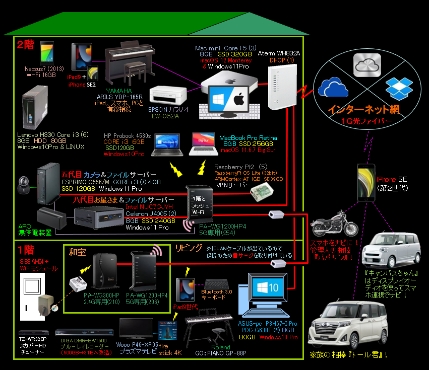 ・・・ 2025年5月現在 ・・・ サーバーはハード・ソフト共に3年近くバージョンアップしていない そろそろ更新したいと考えている! その他パソコンも同じくハード的には古いまだ、何とかしたいなあ。 今回は、「ミライース」が仕事を終えて「キャンバス」にバトンタッチ! 車も進化しディスプレイオーディオ搭載でスマホ連携することにした。